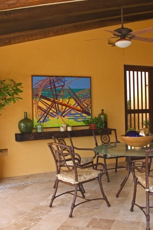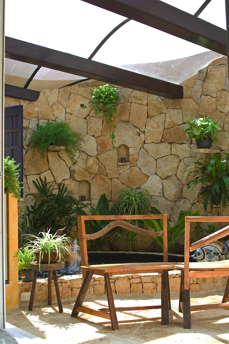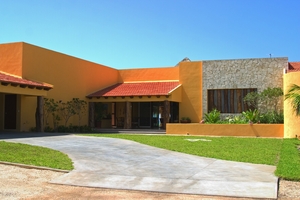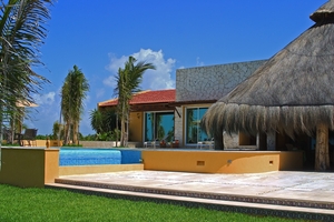 Casa de playa en las costas de Yucatán, con un estilo mexicano rústico. Este proyecto cuenta con una paleta de colores cálidos y elementos decorativos propios de la región como palapas de huano, muros de piedra y amplias terrazas.